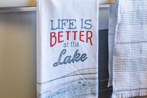 Grill area on the lakeside deck with a gas grill. We also have a charcoal grill located in the garage for your use.